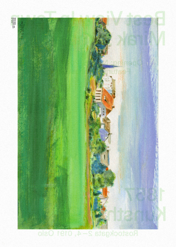 Here, Mirak Jamal presents a different and completed body of work, all representing landscapes or urban elements that interact with works by his father Mohsen Jamal (born in Tehran in 1941). Mirak's works respond to those of Mohsen and in particular to the small landscape study carried out in 1986. This drawing, exhibited on a mauve-colored wall, depicts a small suburban town whose various elements are specific to the German landscape. The village depicted is where the family had originally settled as newcomers to the country in the 1980s after fleeing Iran.